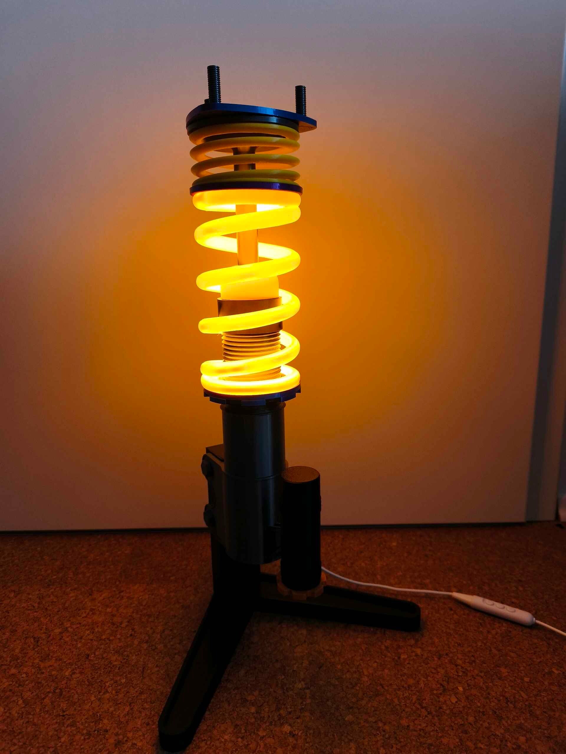Impresionante lámpara con diseño de amortiguador deportivo.